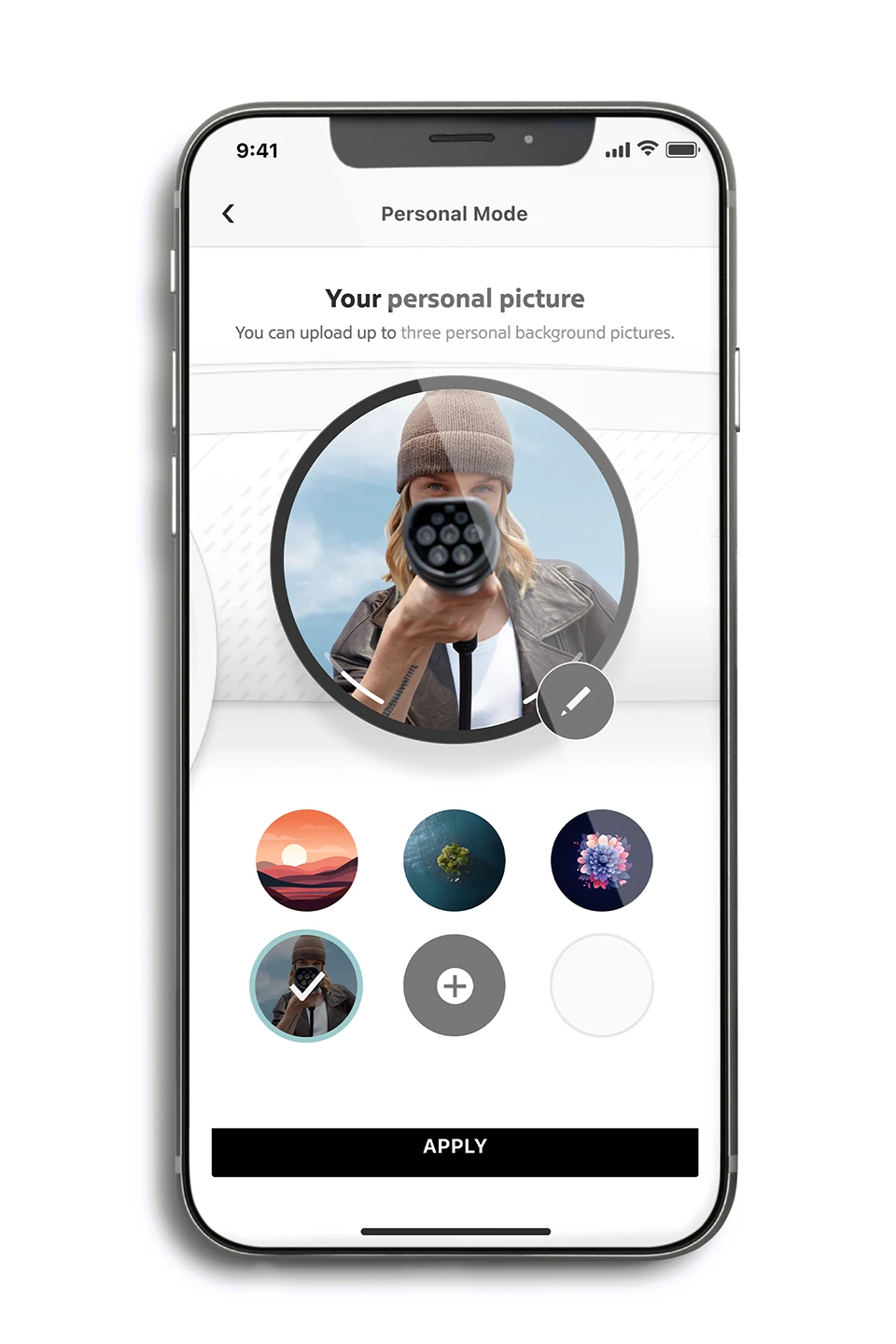 - Select from default pictures. Or even upload you own personal picture into the car via the MINI App.
